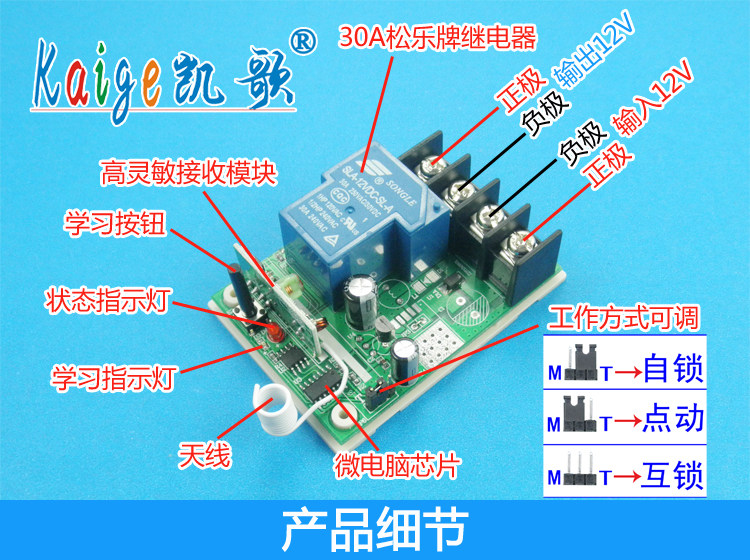 12伏无线遥控开关 大功率遥控开关 控制180W 12v1路无线遥控模块